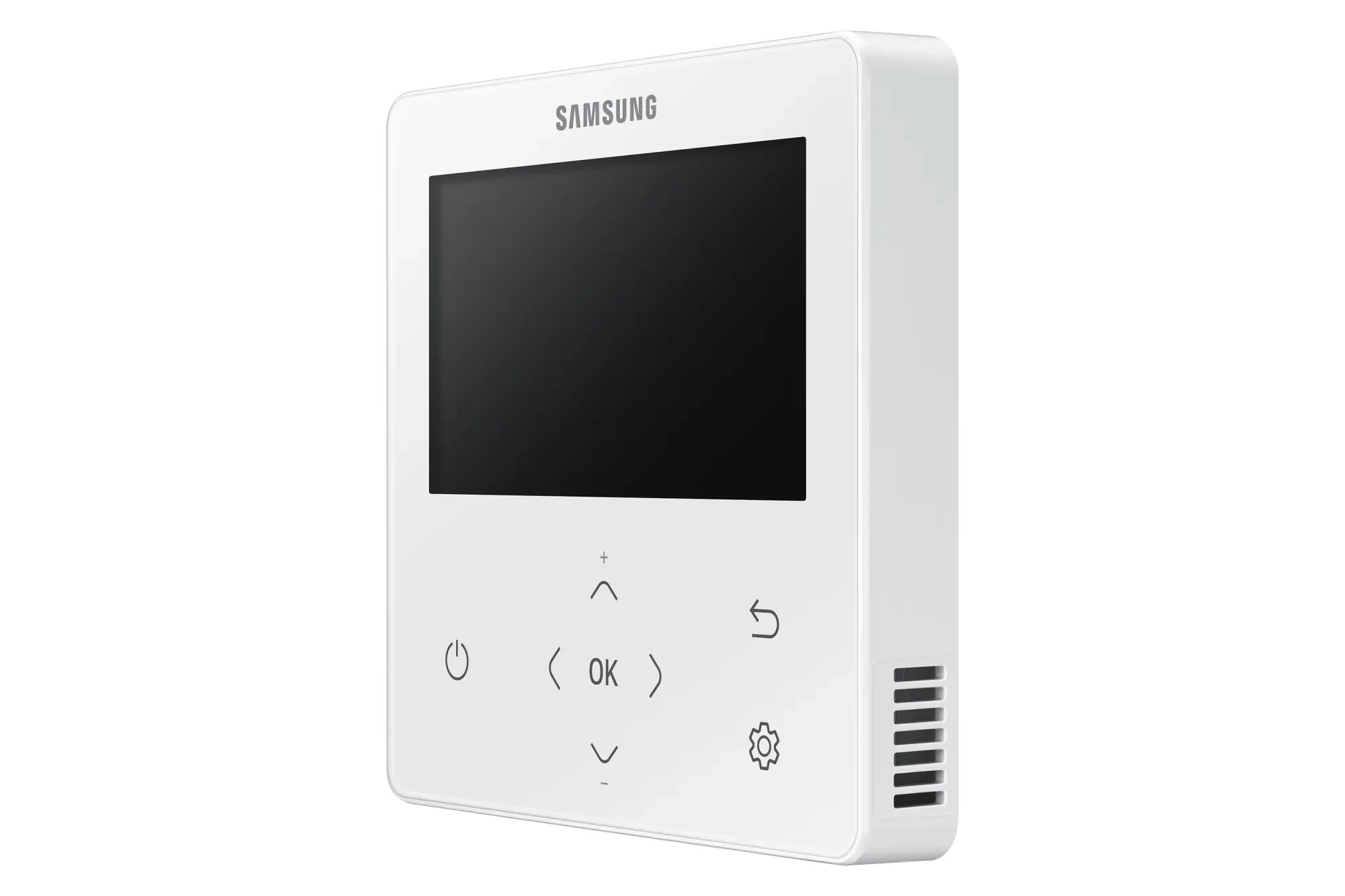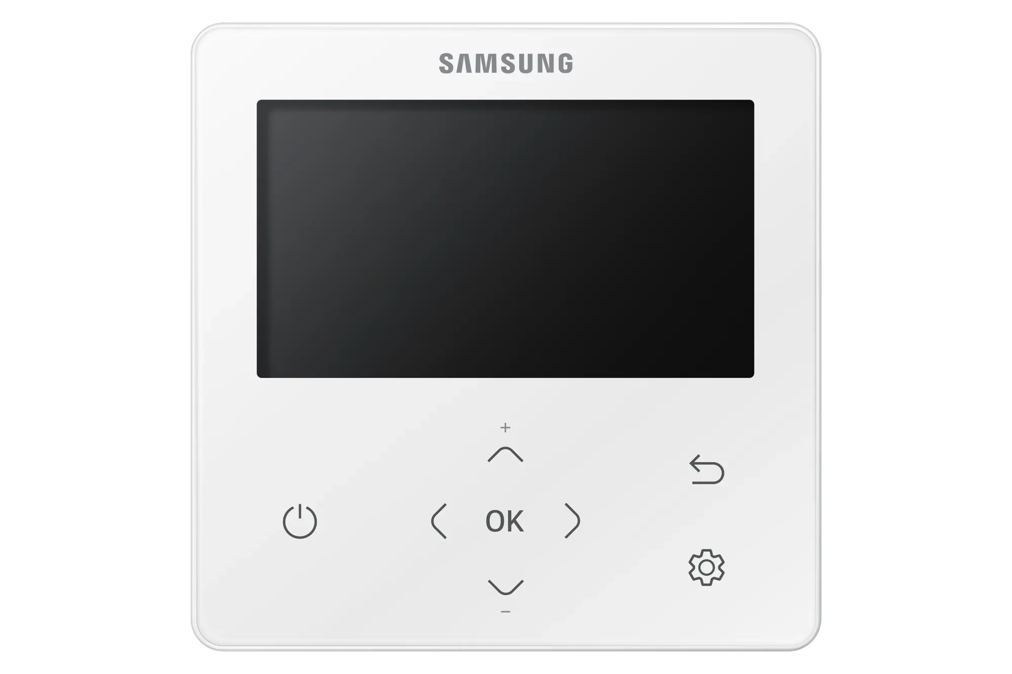 Samsung MWR‑WG00JN – multifunkcinis laidinis valdiklis su spalvotu ekranu, kuriame aiškiai atvaizduojamos visos sistemos būsenos ir komandos, todėl valdymas tampa intuityvus net pirmą kartą jį naudojant.